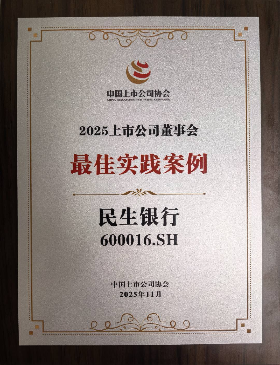 民生银行荣获“2025上市公司董事会最佳实践案例”荣誉,是对我行积极践行现代公司治理理念、持续加强董事会建设、不断深化投资者沟通等诸多工作的充分认可。