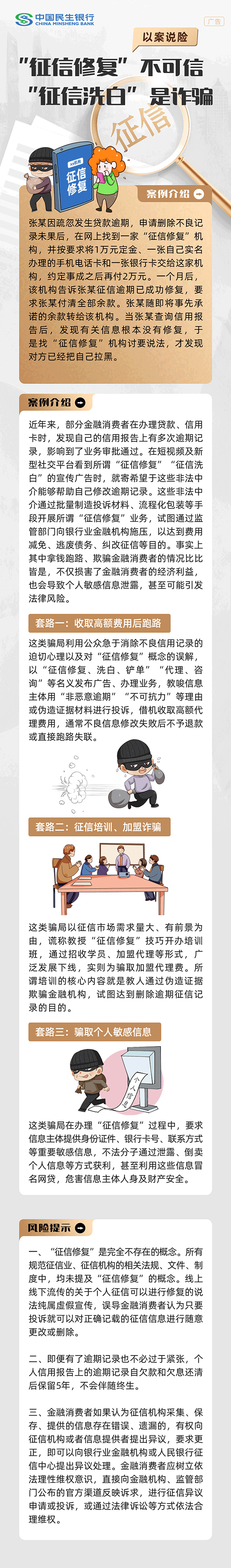 以案说险丨“征信修复”不可信,“征信洗白”是诈骗