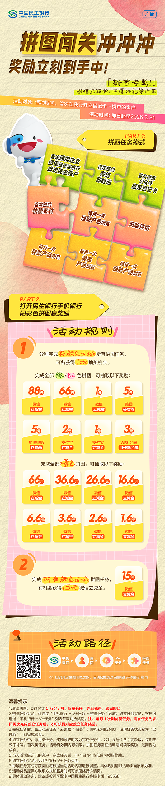 民生银行新客专属 微信立减金、丰厚好礼等你来