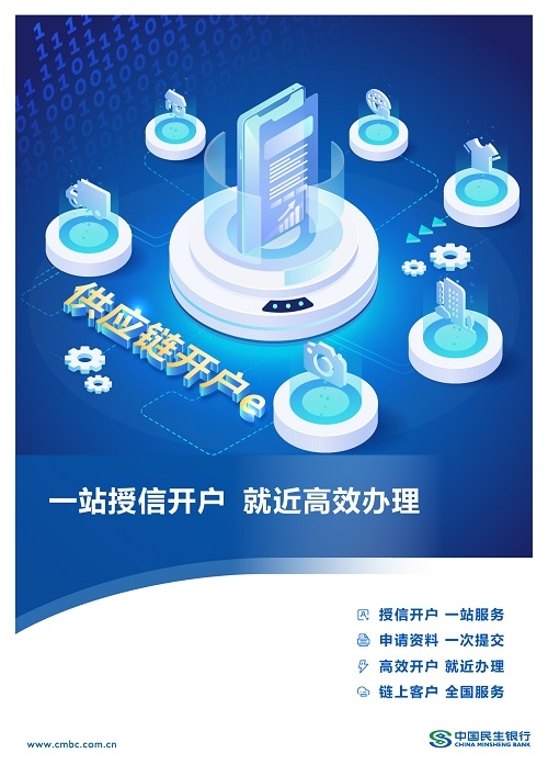 民生银行为满足供应链场景项下分布在全国的供应商或经销商的开户服务需求,通过流程定制、产品组合、数据共享、主协办行协同等方式,为供应链上下游企业提供就近开户的综合账户服务。
