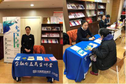 民生银行上海分行立足社会、服务大众,积极践行社会责任,建立消费者权益保护宣传教育长效机制,持续三年开展“金融公益 民生讲堂”消费者权益保护宣传教育活动,得到了广大客户和群众的一致肯定。2018年至今组织举办“金融公益讲堂”1305场次,累计发放易拉宝、海报、宣传折页、宣传书册50000余份,受众达3万余人次。民生银行上海分行将继续深化“为民而生 与民共生”的理念,帮助社会各界群体树立正确的金融消费观念,提高警觉性,自觉远离和抵制非法金融活动,积极发挥在服务百姓生活、提升公众维权意识、构建和谐金融生态环境中的重要作用。